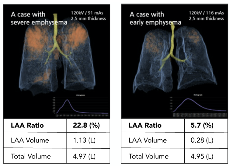 - LAA Analysis provides quantitative measurement of a pulmonary tissue image with low attenuation areas (LAA). This feature supports the physician in quantifying lung tissue image with low attenuation area